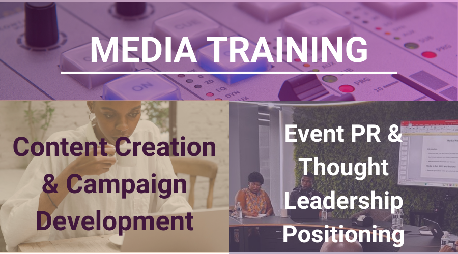 Media Training & Content: Media Training Workshops, Content Creation, and Campaign Development.